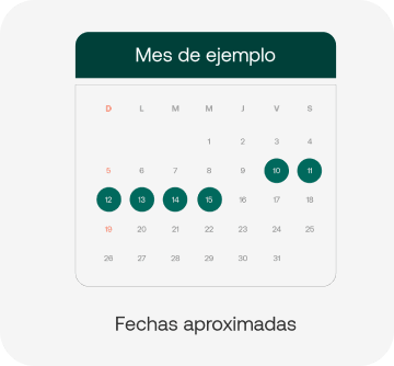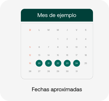 ¿Cuándo recibiré dicha información? Correo electrónico mensual con los días festivos del mes siguiente, que afectan al servicio. Lo recibirás a mediados de cada mes, normalmente entre los días 10 y 15.